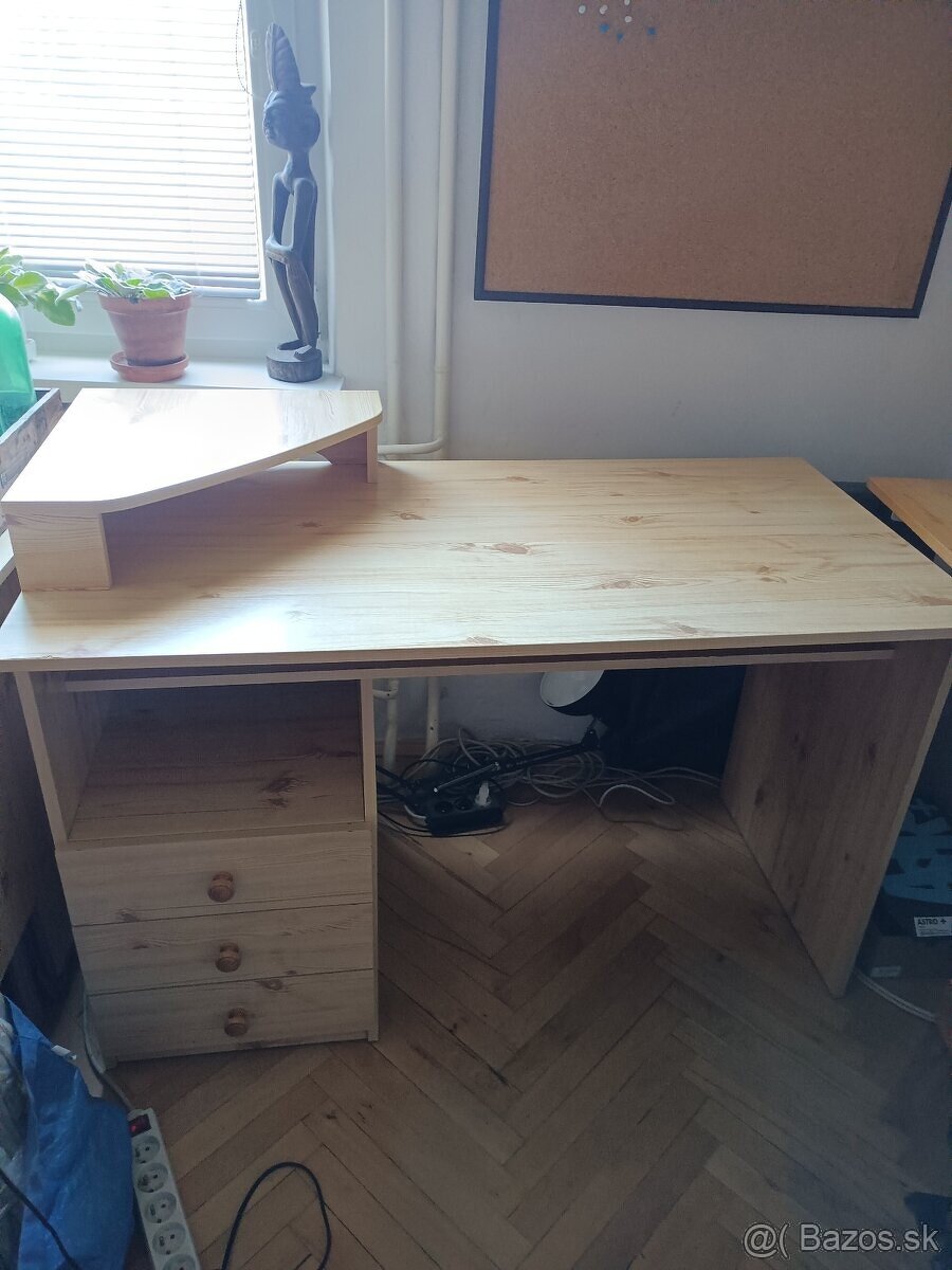 Predám kancelársky stôl 120x60x75cm, vhodný pre deti, pár známok opotrebenia, viď foto, inak zachovalý stav, mám 2ks. Možný len osobný odber v BA-Ružinov.