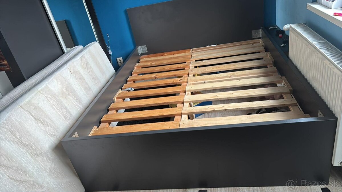 Predám postel s DTD hrúbky 36mm, pevná konštrukcia, bez úložného priestoru, s roštom na rozmer matracov 80x200, vonkajší rozmer 169x209