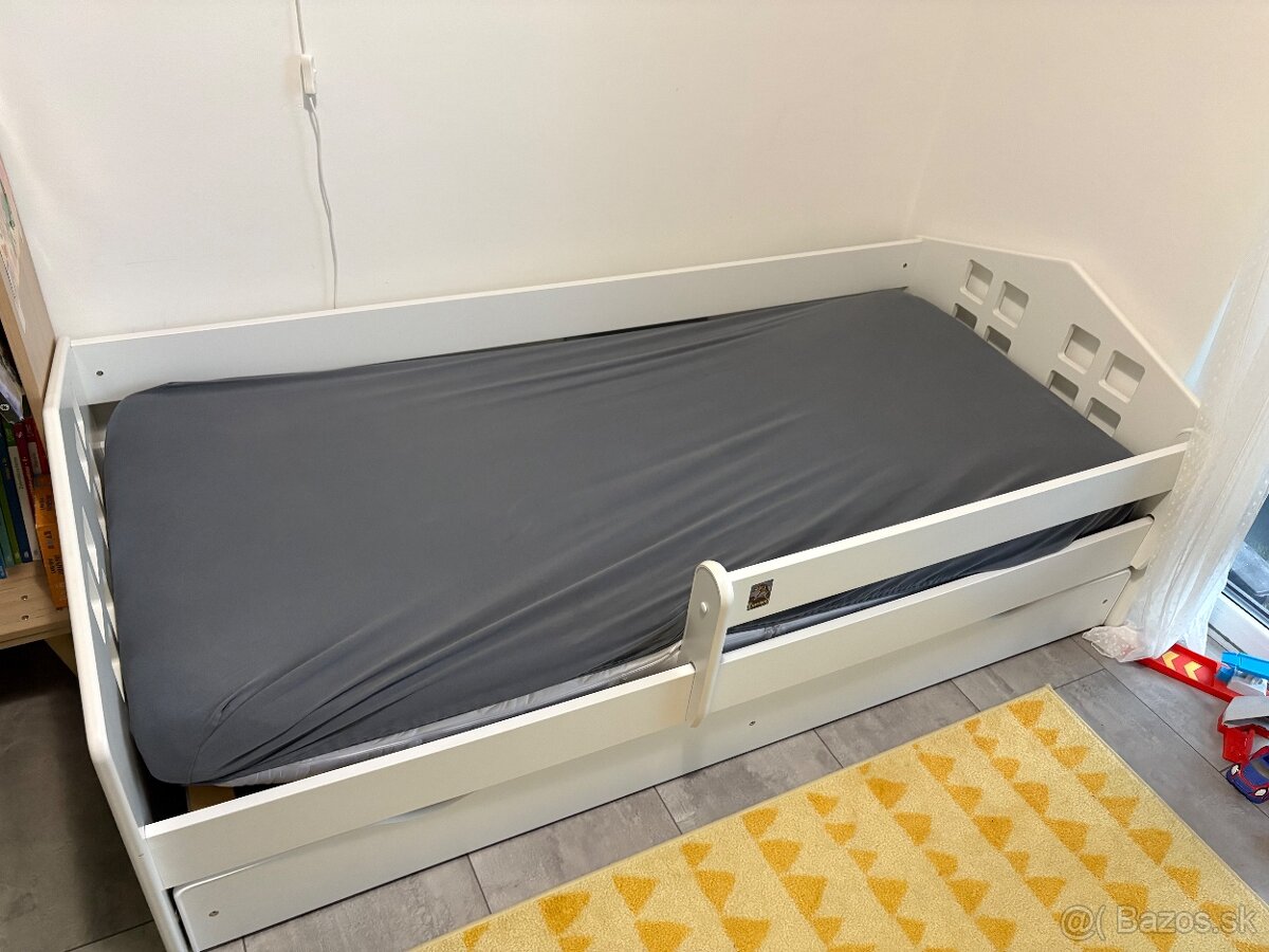 Detská posteľ - [25.3. 2026]Predám posteľ pre deti s rozmerom 160x80 v bielej farbe, s roštom a matracom. Pod posteľou je úložný priestor