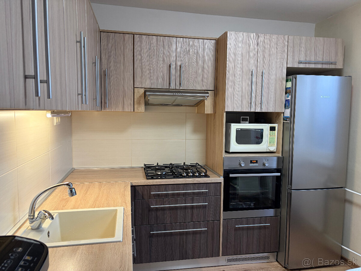 Predám kuchynskú linku, ktorá bola vyrobená na mieru. Rozmery pracovnej dosky sú 2,60 m x 1,45 m ďalej pokračujú skrinky nad chladničkou a mikrovlnkou 2 x 60 cm. Súčasťou predaja nie sú spotrebiče, časť spotrebičov viem predať spolu s linkou za výhodnú cenu, časť si nechávam. V prípade predaja celej linky, viem predať linku vrátane veľkej vstavanej umývačky riadu značky Bosch, pol ročnej sklokeramickej elektrickej varnej dosky Gorenje a vstavanej rúry Elektrolux, granitového drezu a batérie za cenu 1100 Eur. V spodnej časti linky je miesto na veľkú vstavanú umývačku riadu. Šuflíky, aj dvierka majú funkciu automatického dojazdu, linka ma kvalitné kovanie. Horné skrinky sú rozložiteľné, dajú sa poskladať podľa potreby. V cene je aj granitový drez značky Blanco a umývadlová batéria. V linke je miesto na veľkú vstavanú umývačku riadu, ktorá nie je v cene. Len osobný odber Trebišov. Cena v inzeráte je len za samostatnú linku, drez a batériu. Predaj je aktuálny koncom tohto mesiaca. Prosím volať v prípade seriózneho záujmu, ďakujem.