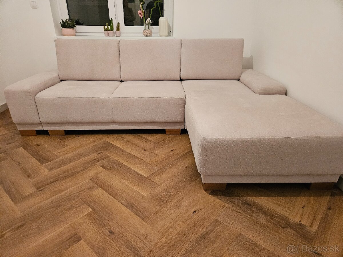 Sedacia súprava / gauč 103/2L - [28.3. 2026]Predám moderný rohový gauč L-ko. Ide o výstavný kus. Rohová sedačka je rozkladacia, má jeden veľký odkladací priestor a má aj polohovateľné opierky hlavy. Pohovka má tvar L.