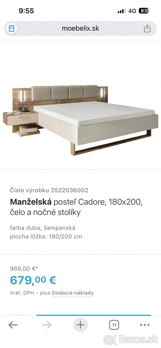 Link na posteľ: https://www.moebelix.sk/p/manzelska-postel-cadore-180x200-celo-a-nocne-stoliky-002522036002?utm_source=google-x&utm_medium=shopping&utm_campaign=s-ecomm_sl_pmax_ao_on_mbx-sk&utm_term=&gad_source=1&gad_campaignid=17182261654&gclid=Cj0KCQjw1ZjOBhCmARIsADDuFTDsPaIjW7ykQU4yToRPzOYWx3Up8A9Rp5Pmm4adseCXRWRSe3WP2ZMaAkYYEALw_wcB