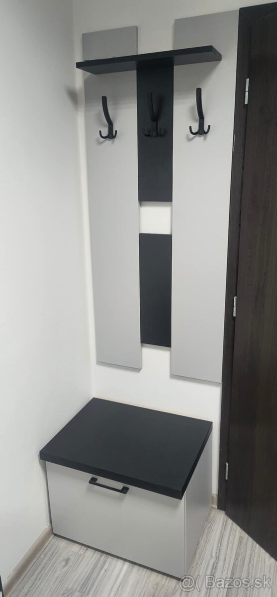 Predsieňová zostava/ vešiak + botnik - [27.3. 2026]Predam kovovu predsieň, sirka 90cm, vyska 190cm a hlbka 35 cm. Horna doska trochu zosuchana inak top stav. Odobny odber Miloslavov.
