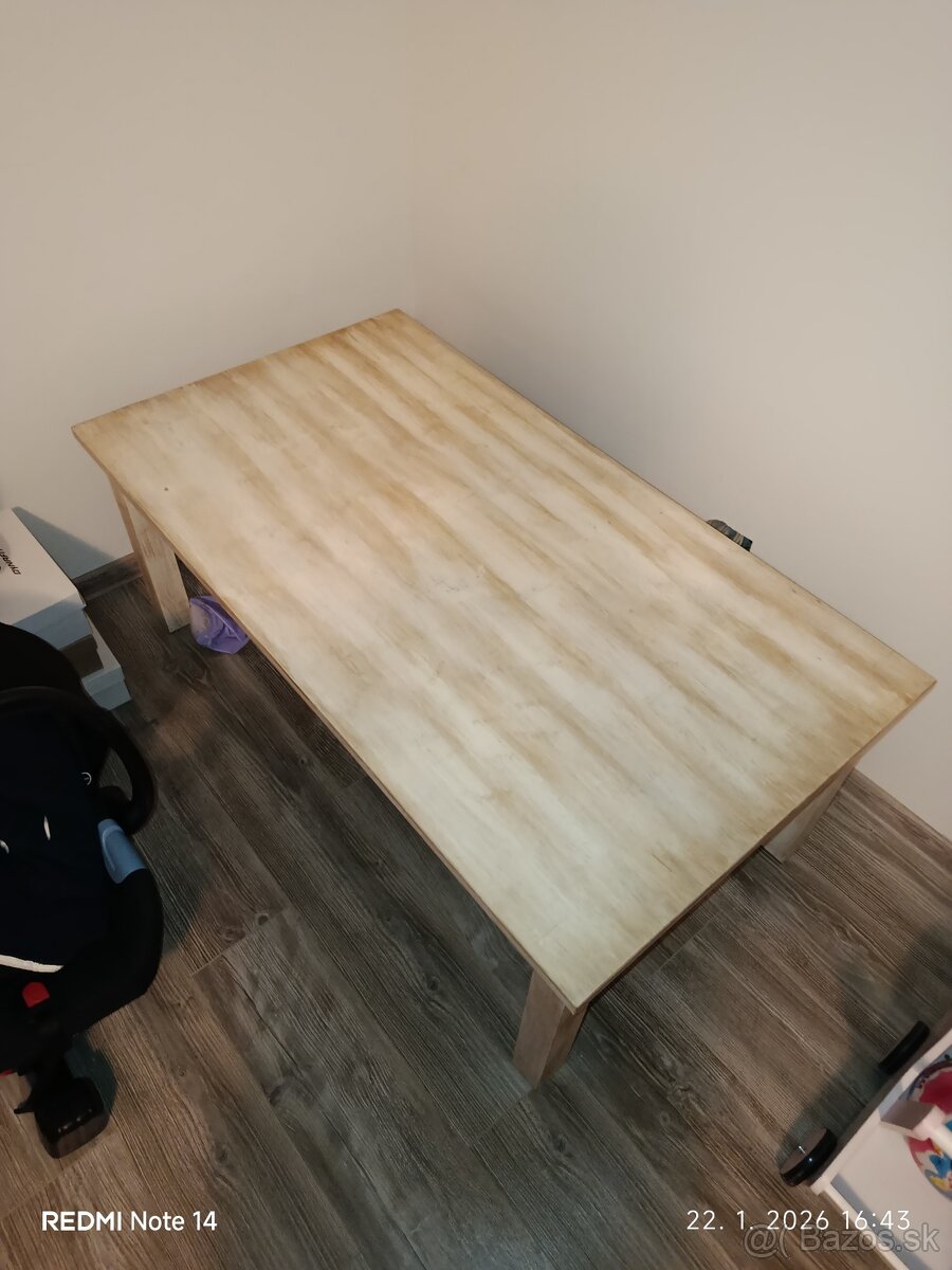 konferenčný stolík - [28.3. 2026]Predám zachovalý lakovaný stolík z masívu.Dlžka 140cm,šírka 50cm,výška 56cm.Cena 35€.