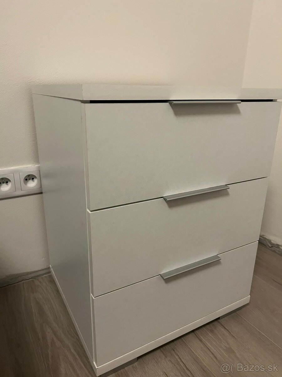 Nočné stolíky - [25.3. 2026]Predám 2ks veľmi zachovalé, nepoškodené, biele nočné stolíky so zlatým kovaním. Šírka:50cm, hĺbka:39cm, výška:42,5cm. Rozmery zásuvky: 43x32x8,5cm. PROSÍM, NA SMS NEODPOVEDÁM.