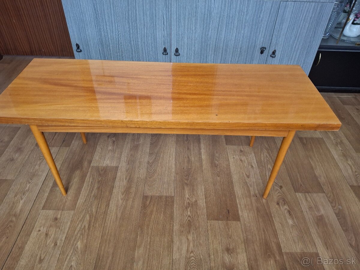 Predám zachovalý lakovaný stolík z masívu.Dlžka 140cm,šírka 50cm,výška 56cm.Cena 35€.