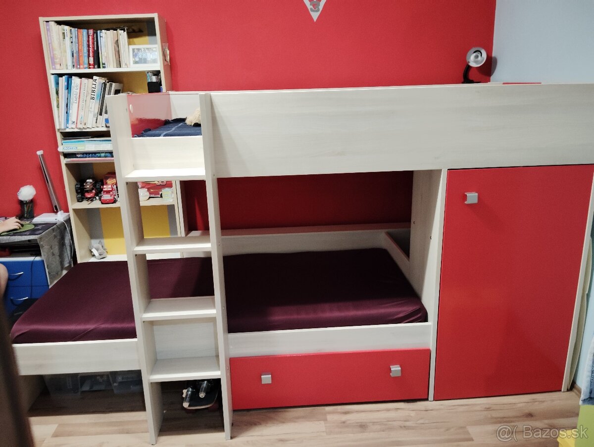 Poschodová posteľ, písací stôl, skrinka, stolička - [27.3. 2026]Skrinka sa dá premiestniť podľa potreby tak isto aj písací stôl