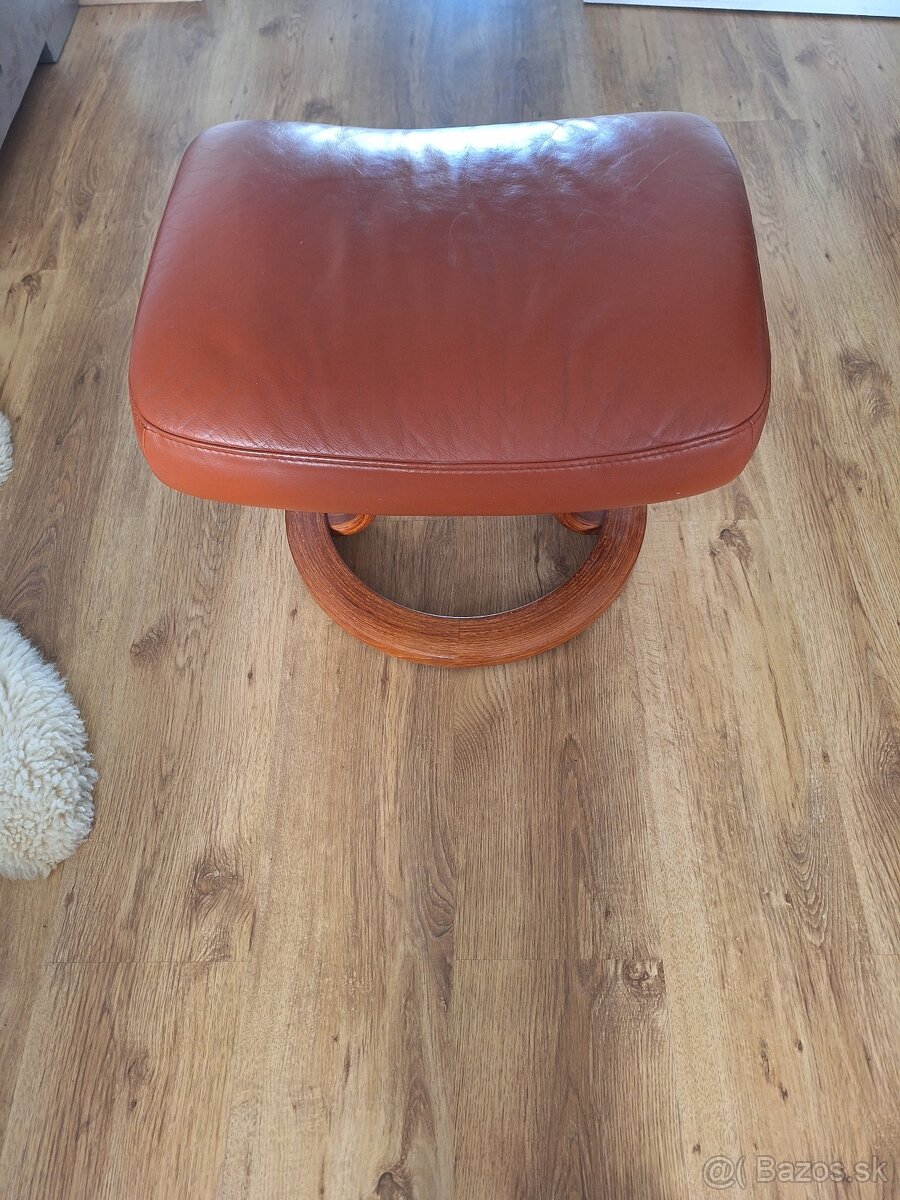 Kožené kreslo s taburetkou