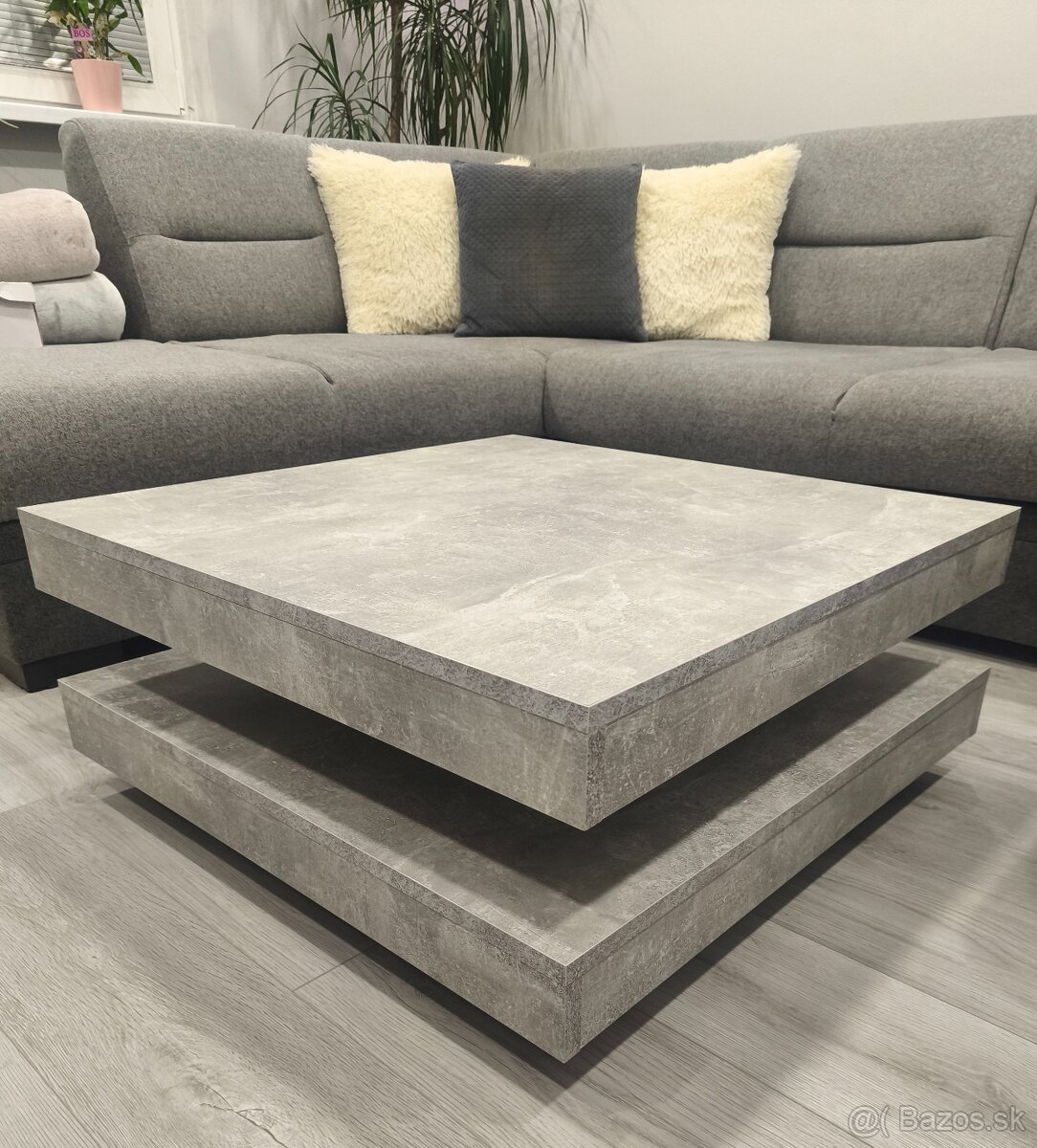 Predám konferenčný stolík s 360° otočnou hornou časťou vo farbe šedý betón.
