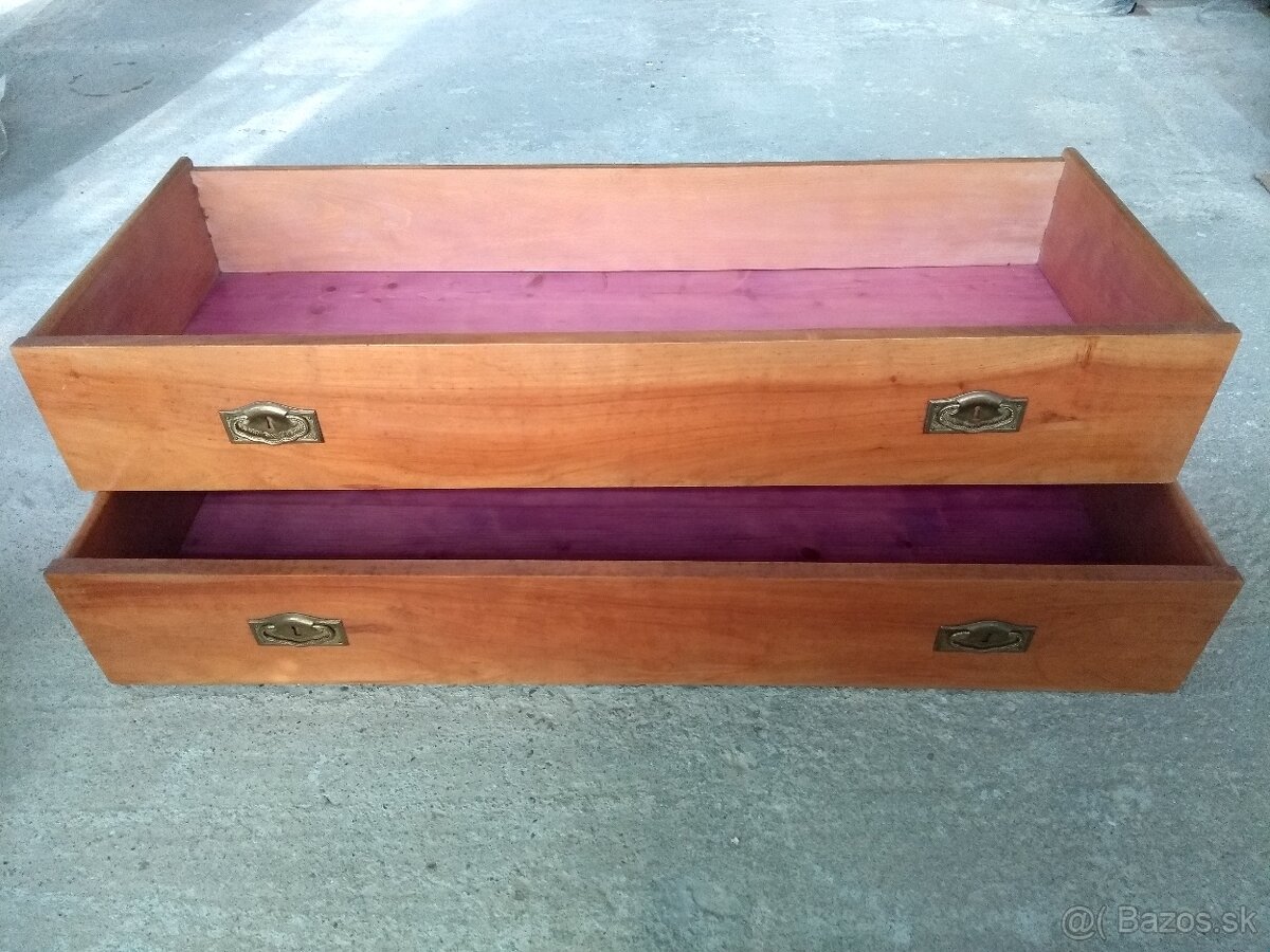 Darujem za skorú cenu 2ks zasuvky do skrine alebo komody s ozdobnim kovanim /d/110cm /hl./42,5cm/š/17cm. zrkadlovy ram rozmer 120 x 56cm.za symbolickú cenu jedalenske stoličky 5ks a stôl,šijací stroj,kolovrat,a rôzne predmety