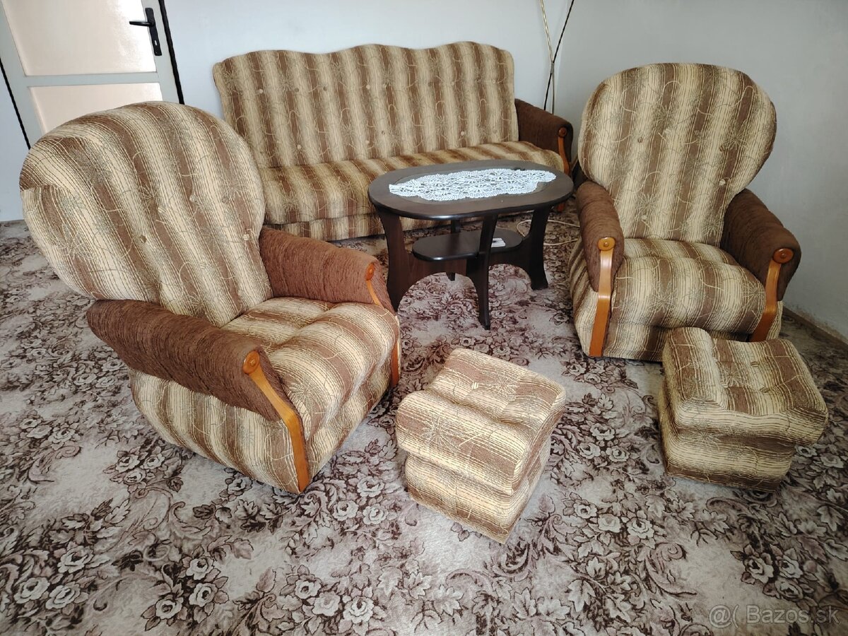 Predám gauč kreslá taburetky stolík komplet spolu za 160e