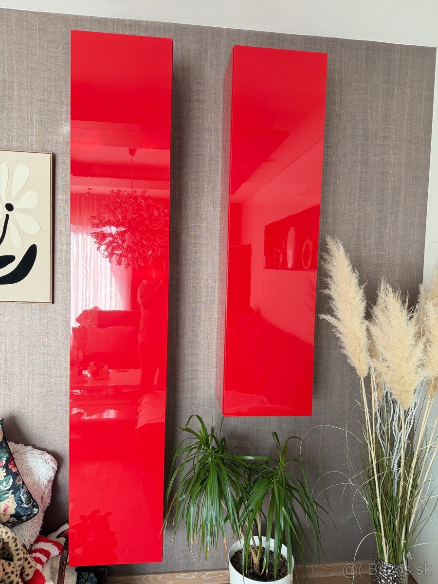 Tri krasne skrinky ako set do obyvacky alebo inej miestnosti.