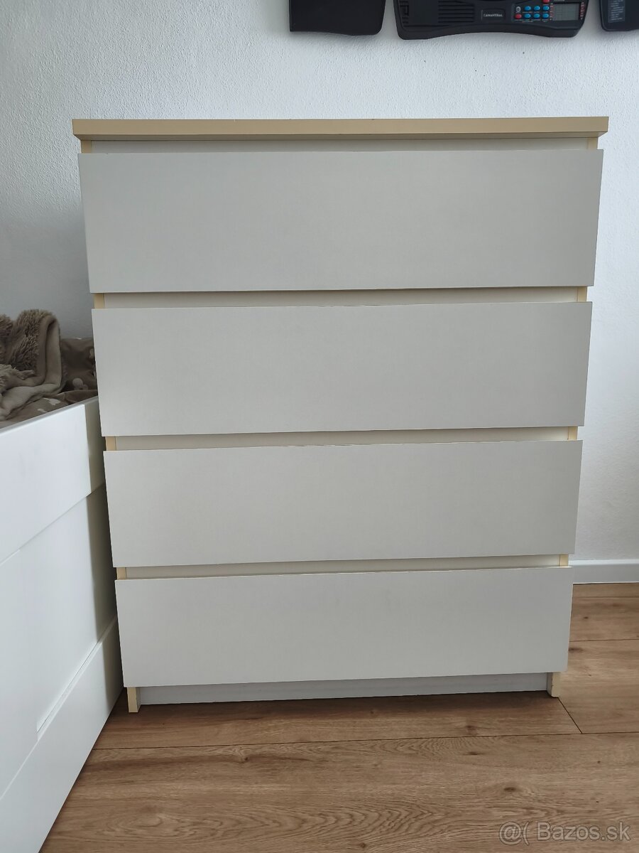 Predám dve 4 zásuvkové priestrané komody Ikea Malm. Ľahko vysúvateľné zásuvky so záražkou proti vypadnutiu.Bežné známky užívania.Predám aj samostatne, cena 50€/ks
