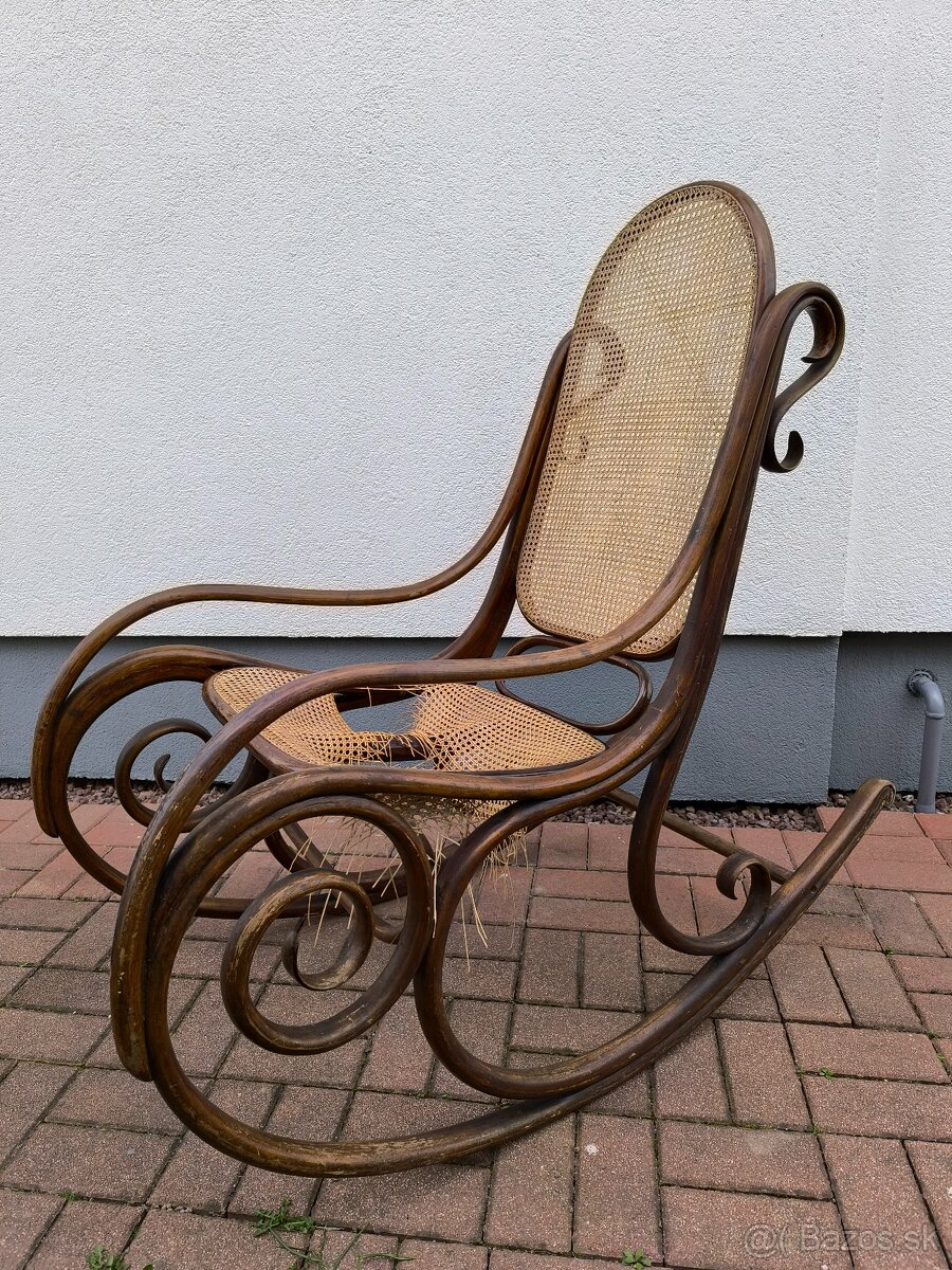 Predam starozitne hojdacie kreslo.Ohybany buk,vyroba zrejme Thonet.Vhodne na renovaciu.