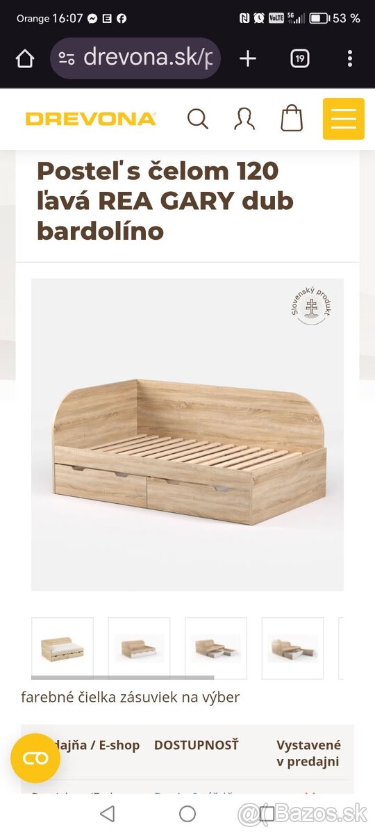Posteľ s úložným priestorom - [4.2. 2026]Predám túto kvalitnú posteľ s úložným priestorom aj na druhý matrac od slovenského výrobcu Drevona