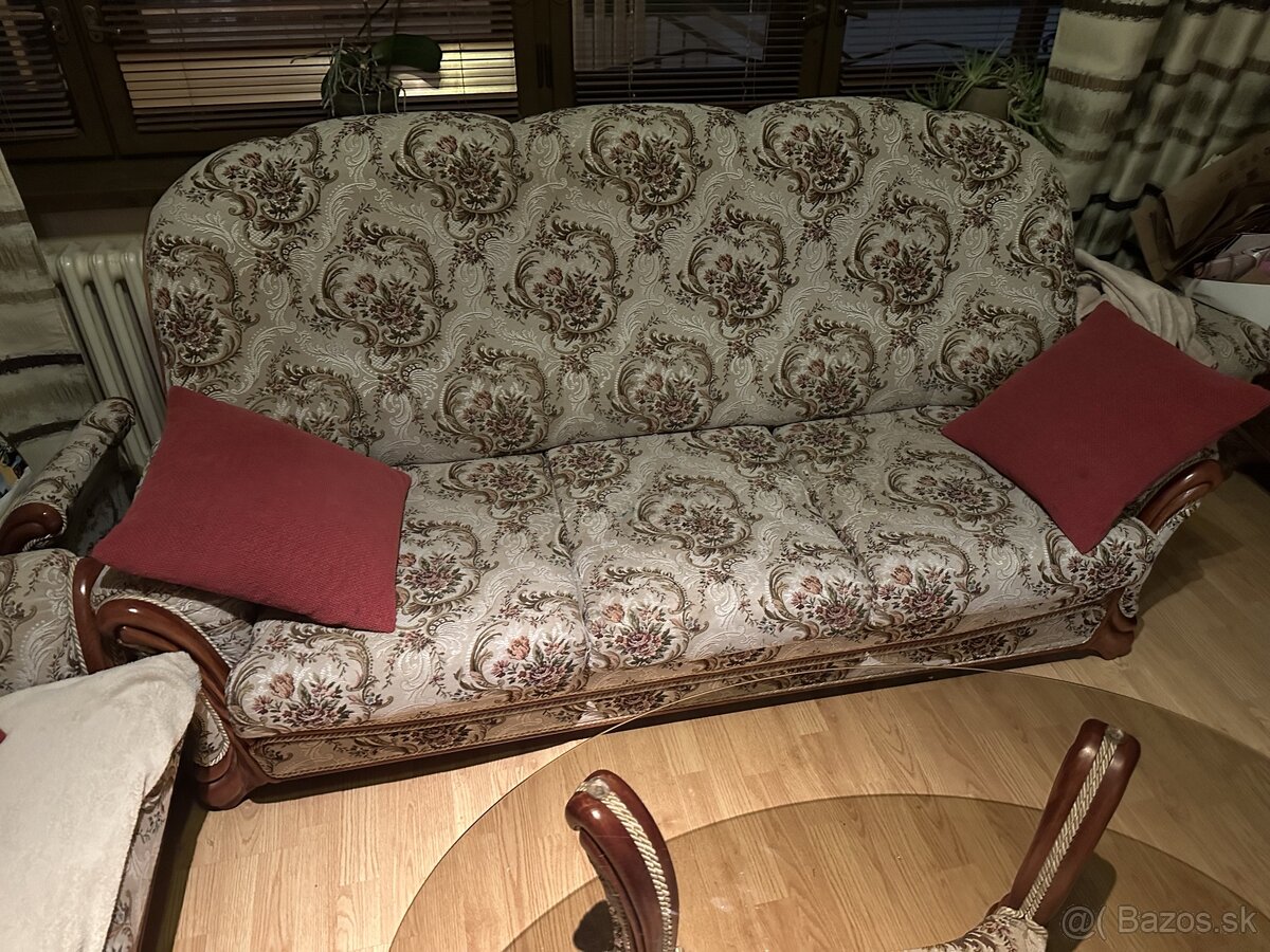 Starožitná sedacia súprava - [31.3. 2026]Predám veľmi pekný starožitný set - gauč, kreslo, taburetka. Je vo veľmi dobrom stave. Nie je vôbec vysedený, slúžil skôr ako dekoratívny prvok.