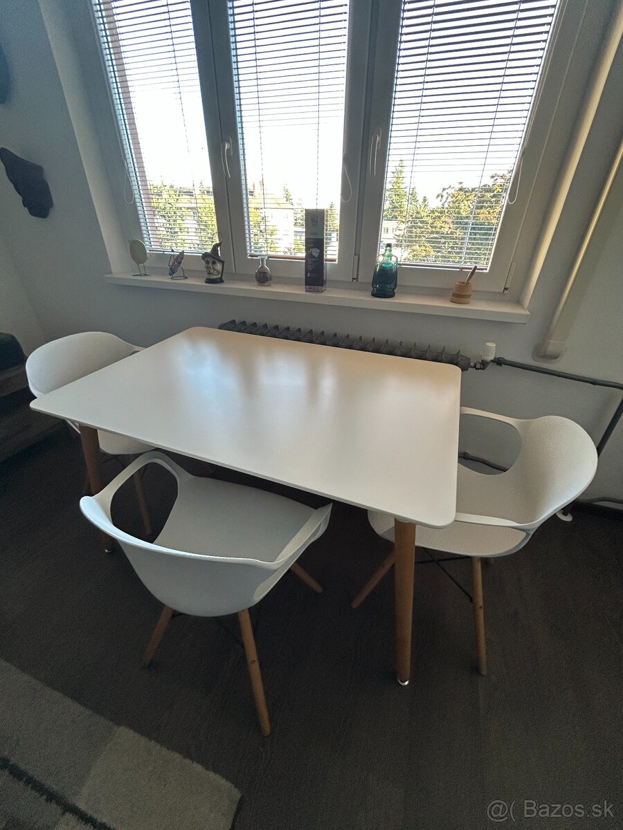 Predam jedalensky set - stol + stolicky - [10.3. 2026]Zdravim, predam jedalensky set - stol s rozmermi 130x80cm (vyska 75cm). Stol je vyrobeny z kvalitnej a odolnej kuchynskej dosky znacky Egger, nohy su hlinikove.