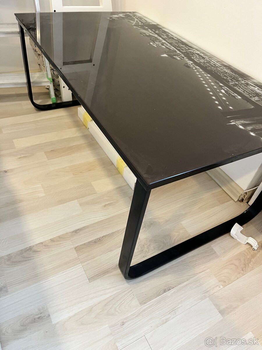 Predám sklenený konferencny stolik , používaný v obývačke . Kostra stolíka je kovová .