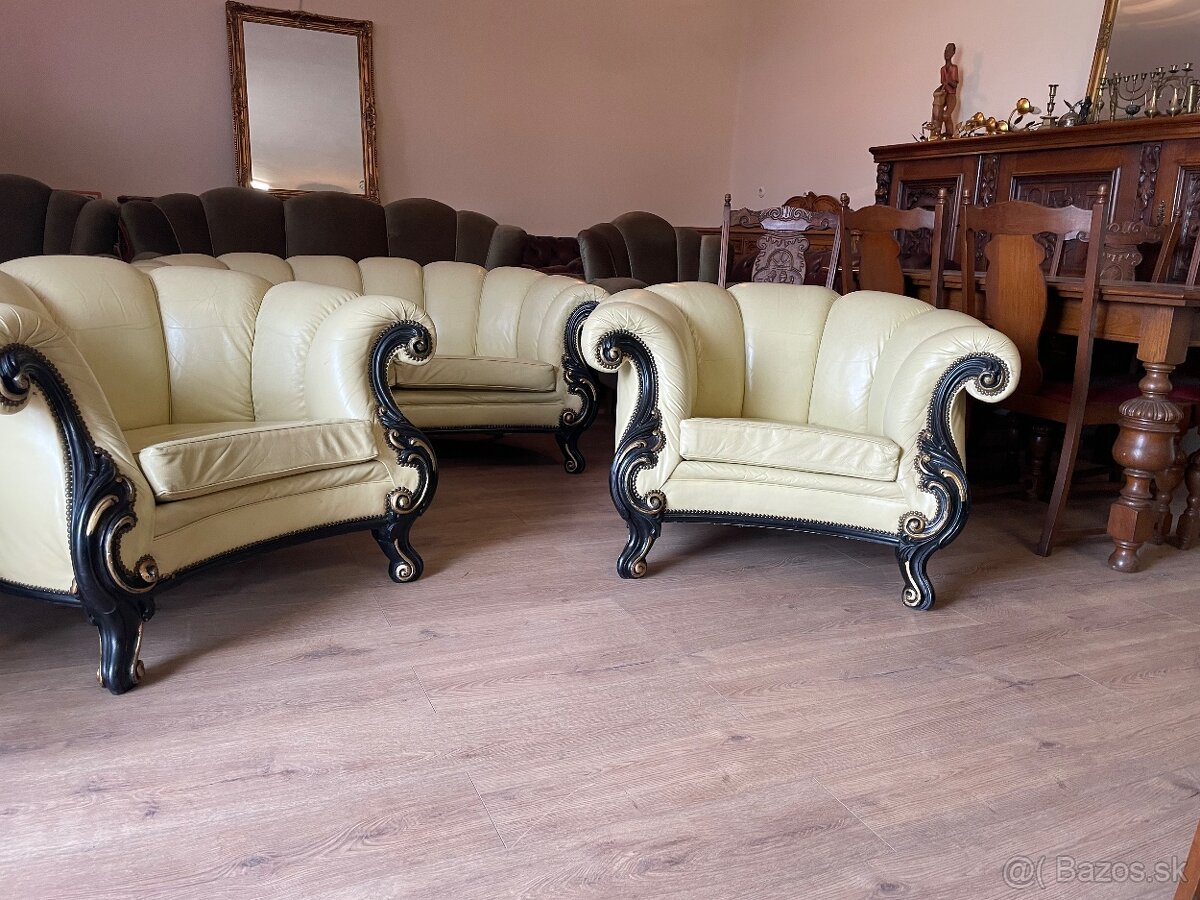 Ponúkam na predaj 3 dielnu neobarokovú celokoženú sedačku z pravej kože, v zachovalom stave.