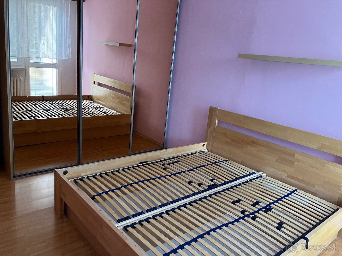 Manželská posteľ rozmer 180x200 vyrobená z masívu s úložným priestorom a lamelovými roštami. Rošty sa vyklápajú zboku.