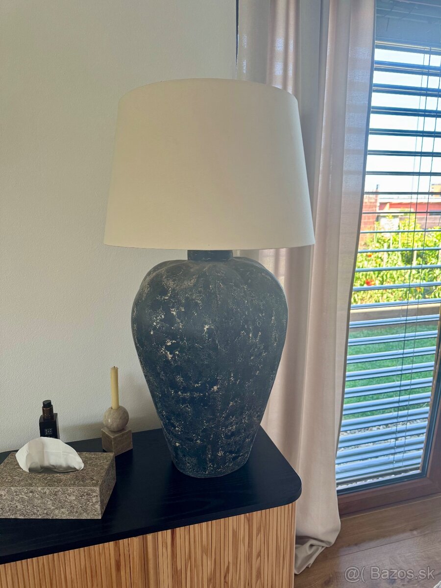 Predam velku stylovu lampu. Kamenina, textil. Vyska 89cm, priemer 50cm.