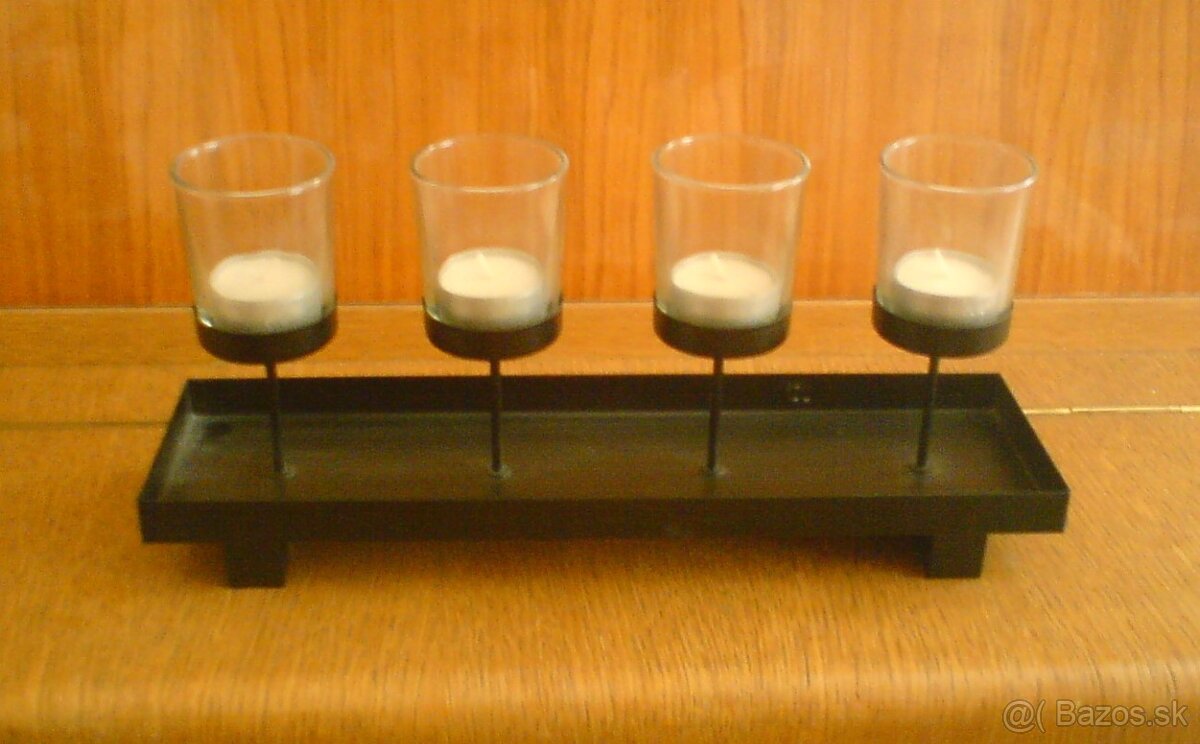 Predám svietnik na štyri čajové sviečky. Materiál kov a sklo, farba čierna.
