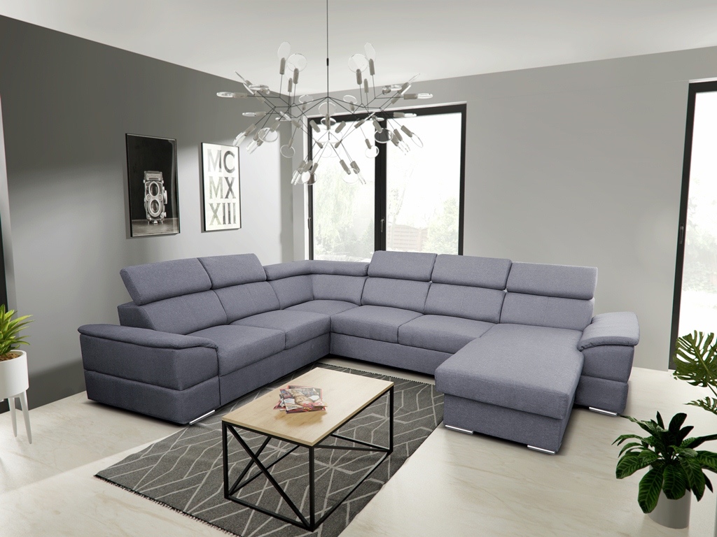 Moderná a priestranná sedacia súprava JOY U PANORAMIC v tvare U s funkciou rozkladania, úložným priestorom v otomane a polohovaním hlavových opierok. Sedačka stojí na hrubších plastových nožičkách (dekor chrom). Sedacia súprava JOY U PANORAMIC disponuje funkciou rozkladania na princípe výsuvného vozíka, ktorý poskytne jednoduché a rýchle rozloženie. Sedacia súprava tiež disponuje veľkorysým úložným priestorom. Výhodou sedacej súpravy sú polohovateľné opierky hlavy (záhlavníky) s nastavením uhla opierky podľa potreby pre maximálny komfort relaxácie.