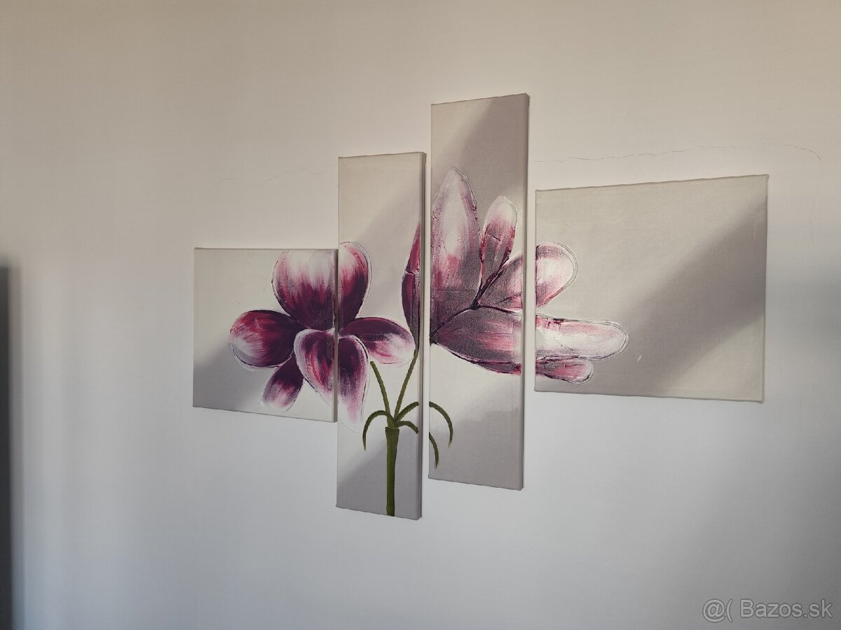 Skladaný obraz kvetov, maľba na plátne 125x90