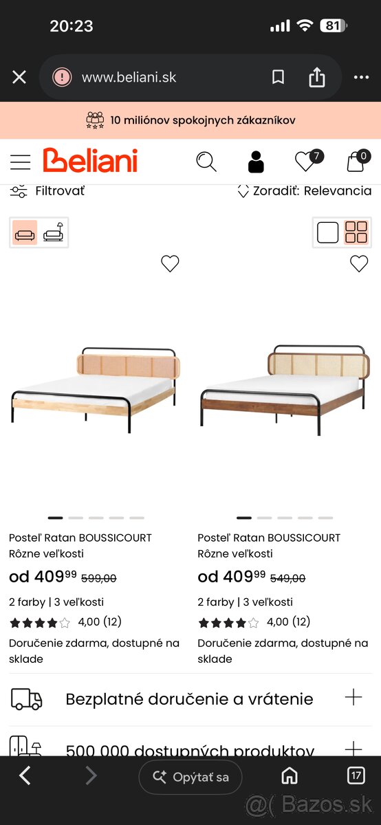 Predam postel v originalnom baleni, krabica bola otvorena (vid foto), na zaklade coho som zistila, ze mi bol doruceny nespravny produkt. Uplne nove, nepouzite, obsah skatule nebol vybraty z povodneho balenia. Link na originalny produkt (dostupne v 2 farbach, neviem ktora je v skatuli): https://www.beliani.sk/search/boussicourt/