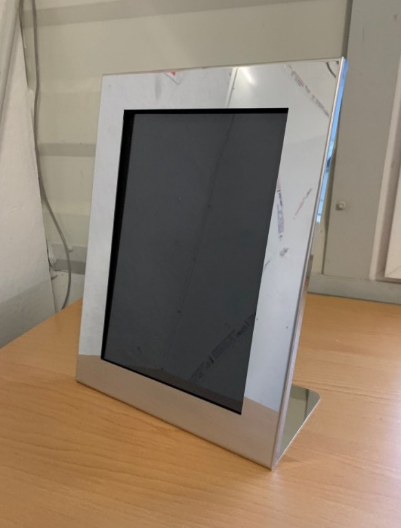 Kovový rám, vhodný na fotky alebo letáky. Formát: A4