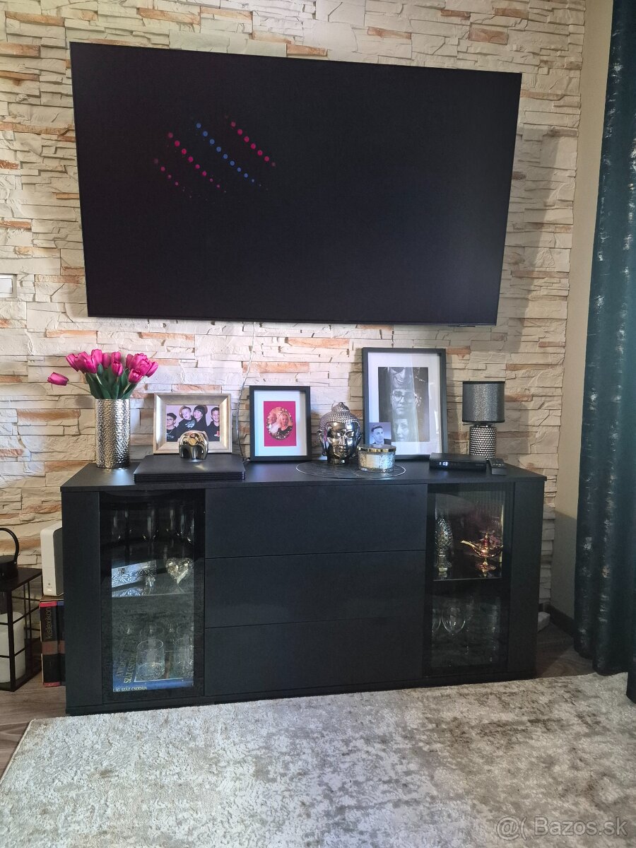 Predám pred Vianocami kúpenú čiernu komodu s vitrínami, len osobný odber Dunajská Streda.