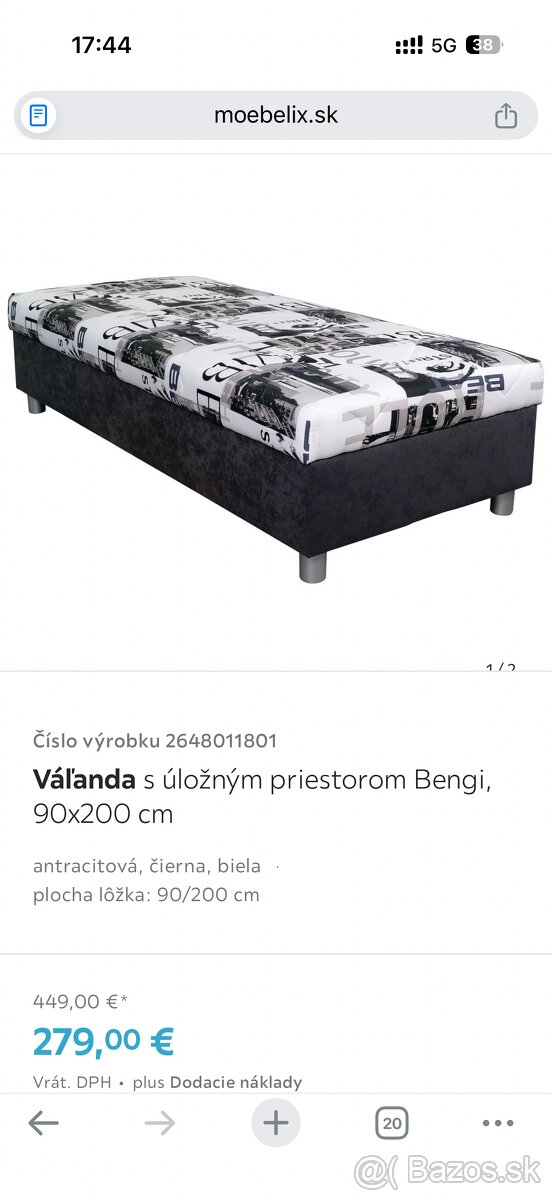 Predám valandu za super cenu. Je vo veľmi dobrom stave, málo používaná, pohodlná na spanie aj sedenie. Súčasťou je aj praktický úložný priestor pod matracom. Rozmery 200 × 90 cm, neutrálna farba vhodná do každého interiéru. Cena 80 eur, Osobný odber v Nitre.V prípade záujmu ma kontaktujte 0919196127