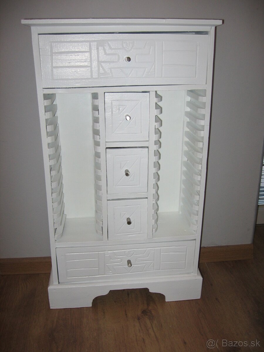 Kvalitná komoda s rezbou z prírodného dreva,možnosť uchytenia aj na stenu.Made in Germany.Rozmery/cm/:80 x46 x 19