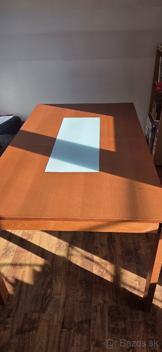 Predám kuchynský stôl so 6ks stoličkami vo farbe čerešňa. Rozmer stola je 150x90.