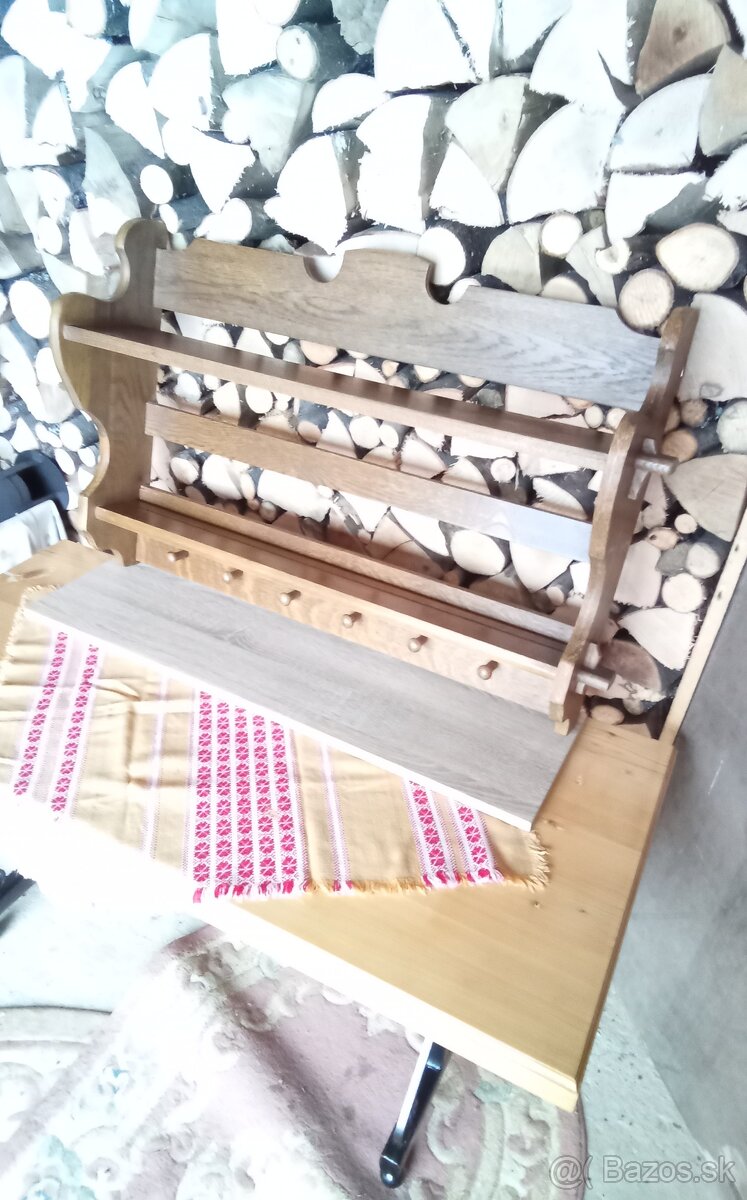 Predám dubovu poličku, je to čistý dubový masív, žiadna dyhovana drevotrieska. Šírka 95 cm, výška 60 cm, hĺbka 23 cm.
